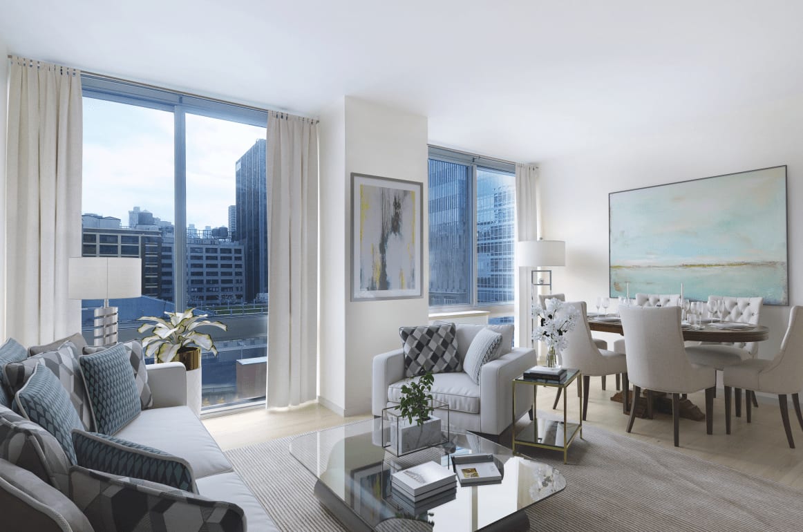 As for rentals, studios range from about $2,400 to $3,500 a month, one-bedrooms from about $3,200 to $4,900, two-bedrooms from about $4,300 to $10,000, and three-bedrooms start at $6,500.